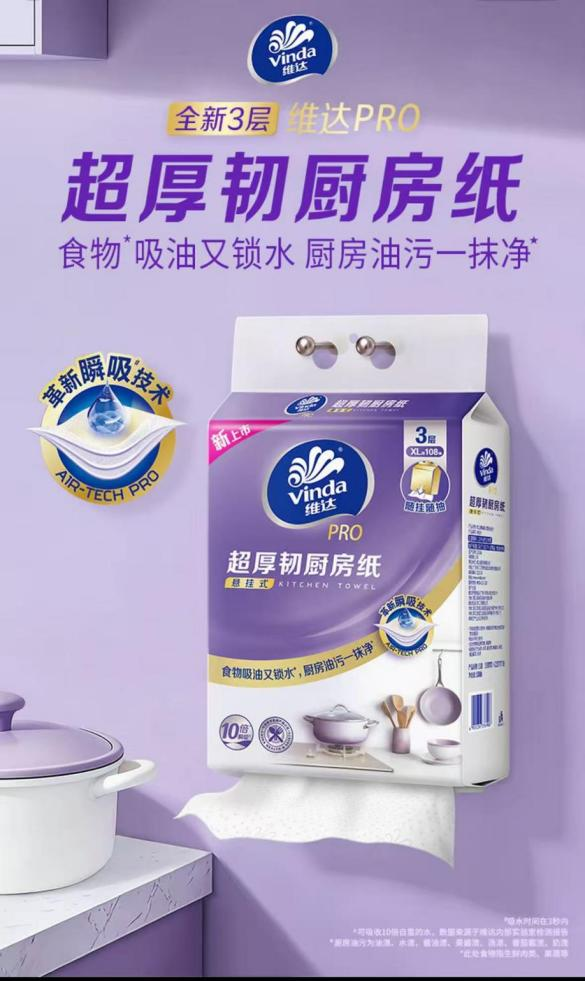 维达超厚韧厨房纸拥有10倍强吸力,空间式吸水层,让油污无处可逃。它采用了高密菱格压花结构,数千个导流吸孔,快速吸收油污,还能精准锁油不扩散!三层厚韧的厨房纸,清洁去污不脏手,能大幅提升清洁效率的同时,湿水也不易破。此外,维达超厚韧厨房纸还通过了可接触食品用产品认证,确保全家安全放心。春节筹备合家欢宴时,为厨房备上这款厚韧好帮手,就是为新年增添一份清爽与便捷,让你和家人都能从繁琐的油污清洁家务中解放出来,更从容地享受新年的团聚时光。