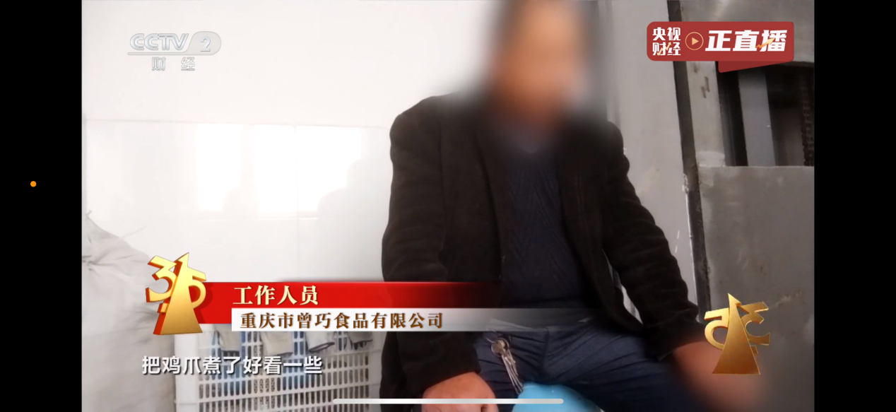 据央视3·15晚会曝光,生产这些鸡爪的工人坦言:自己从来不吃。
