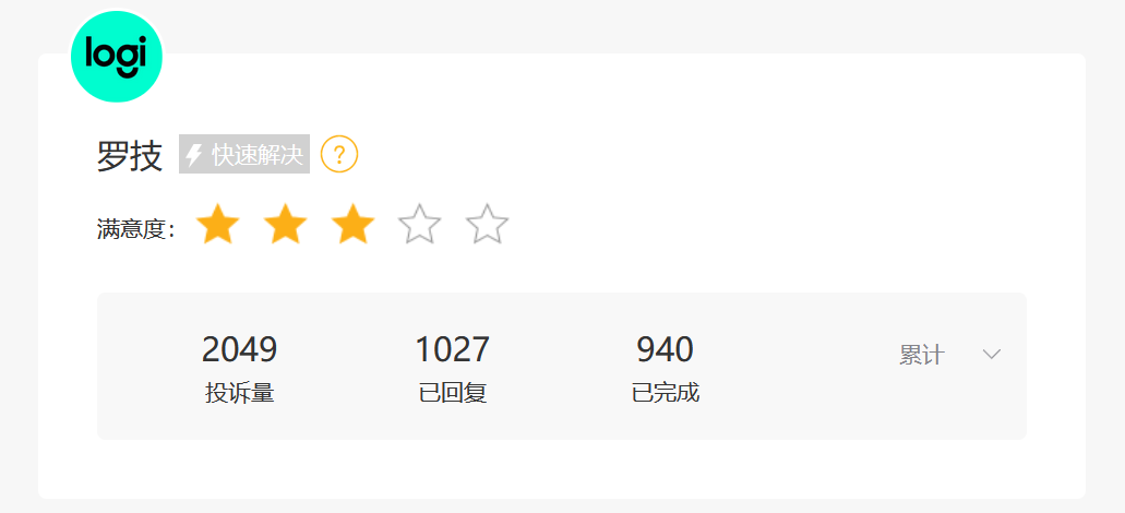 但是在亮眼业绩背后,罗技的产品质量问题一直备受诟病。黑猫投诉平台显示,截至3月26日22点33分,罗技的累计投诉量为2049,投诉问题主要集中在产品质量问题、售后响应慢、拒保等。多名消费者反映称罗技存在“将质量问题甩锅‘人为损坏’,进而拒绝保修”的无理行为。