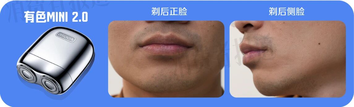 志愿者表示使用有色MINI2.0时颈部有点难剃,存在轻微胡茬