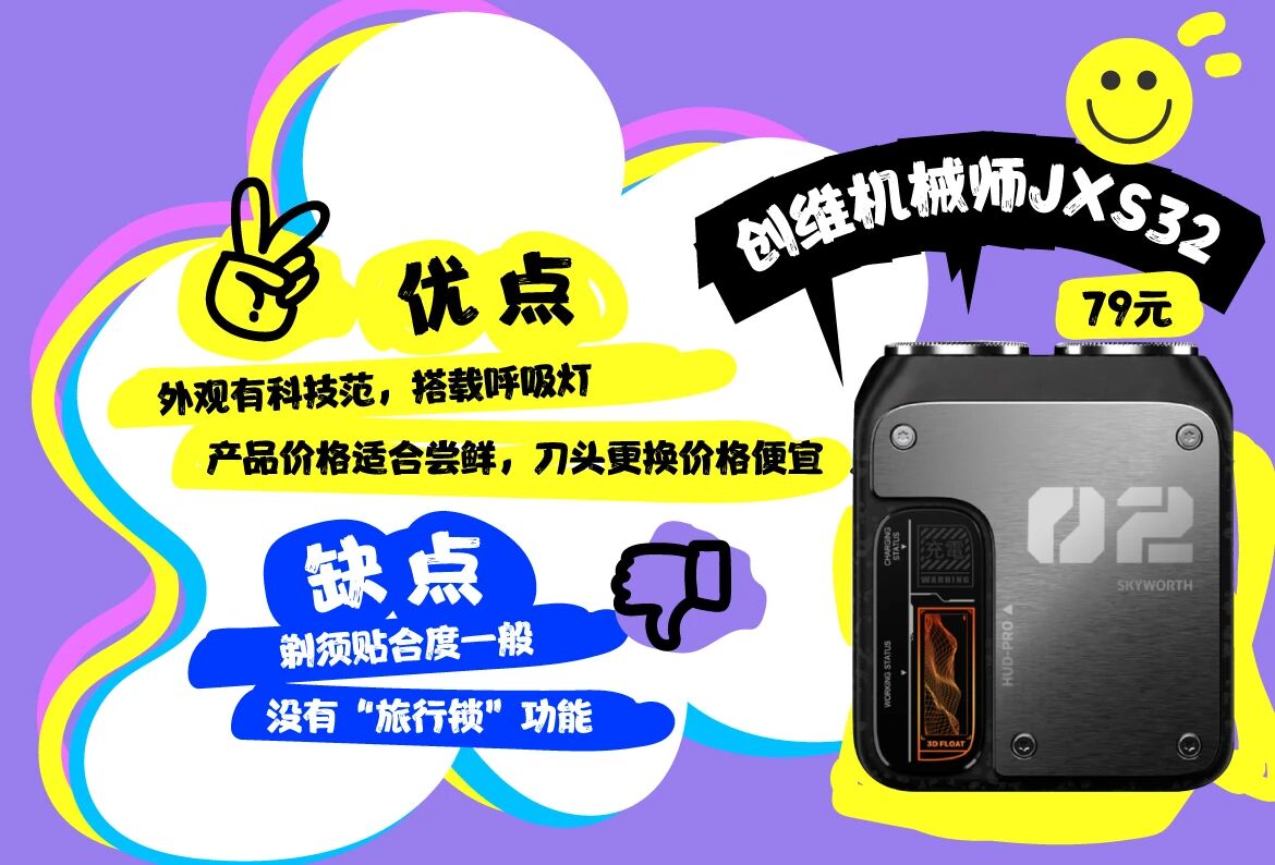 更换刀头涉及到长期使用成本。从品牌官方建议的更换频率来看,飞利浦、飞科的刀头耐用性更好,2年更换一次即可。有色MINI2.0更换成本较高:每隔半年更换一次刀头,单次更换费用近70元。这意味着,若使用2年半以上,刀头更换费用将超过机身价格。