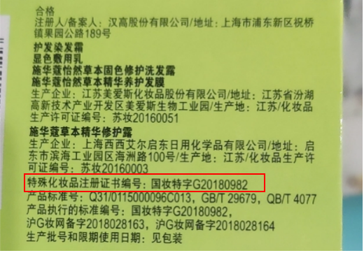 ▲某品牌染发剂的“国妆特字” (图源:电商平台)